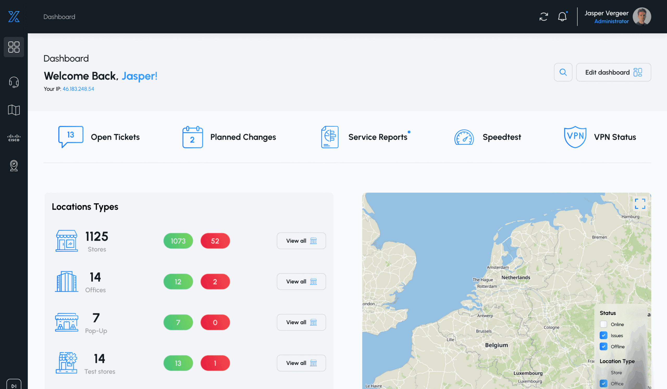 Easily manage locations, devices, and services in one secure portal. Everything centralized for faster, smarter IT operations.